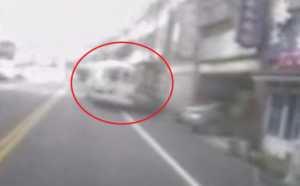 中巴撞擊停路邊廂型車(紅圈處)。翻攝畫面