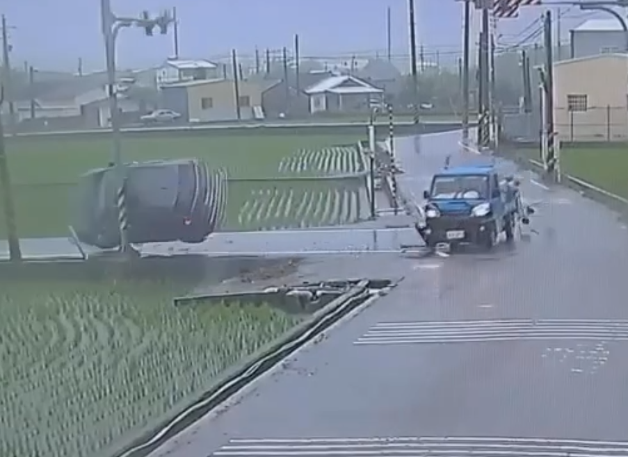 撞畫面曝光!苗栗苑裡自小客車撞小貨車再撞號誌桿翻覆 2人受傷送醫