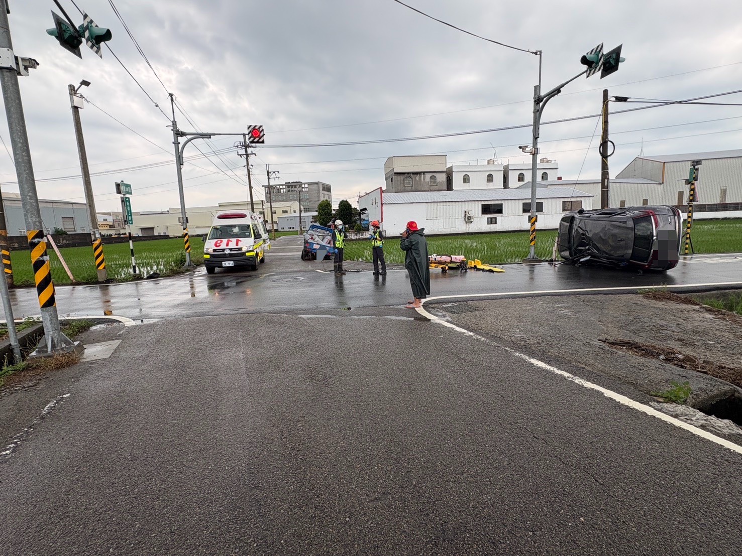 【Lai傳媒、記者爆料網/周庭慶/苗栗報導】苗栗縣苑裡鎮今(6)日發生撞車翻覆事故!通霄分局苑裡分駐所8時30分許接獲報案,苑裡鎮新復3路與新復18路口發生交通事故。員警到場調查,48歲林姓男子駕自小貨車沿新復18路由北往南方向直行,於路口與70歲李姓男子駕駛自小客車發生碰撞,李男車子再撞擊號誌桿翻覆。