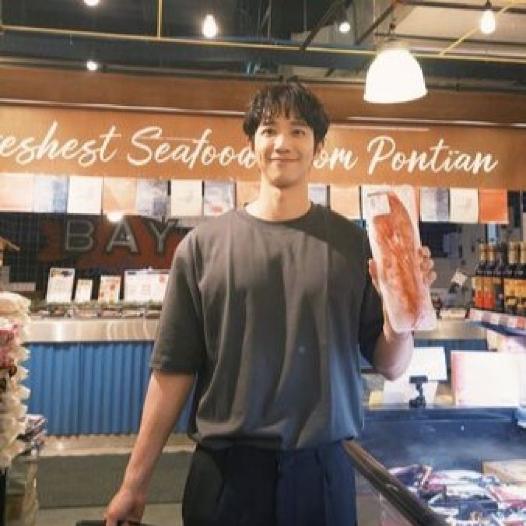 除了清新外型吸睛外,他隱藏在寬鬆上衣下的結實身材也意外成為焦點。當他舉起手中挑選的真空包裝鮮魚時,上臂肌肉因出力而線條分明,展現出長期健身維持的良好體態,讓粉絲驚呼「根本行走的荷爾蒙」。