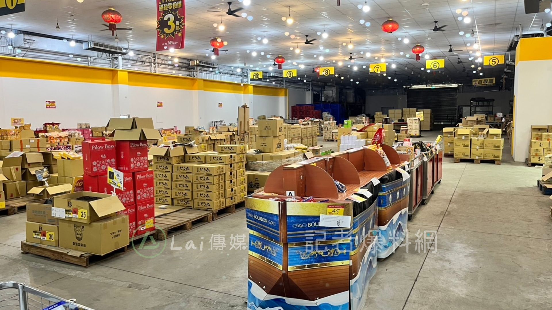《賴傳媒/記者爆料網》獨家取得疲老闆正式宣布歇業前一天的場內畫面,已經有不少東西都清空,架上物品剩得不多,還用黃單寫上清倉價格,連一箱要價1288的福箱,都以50元來出清,價格打到剩0.38折。